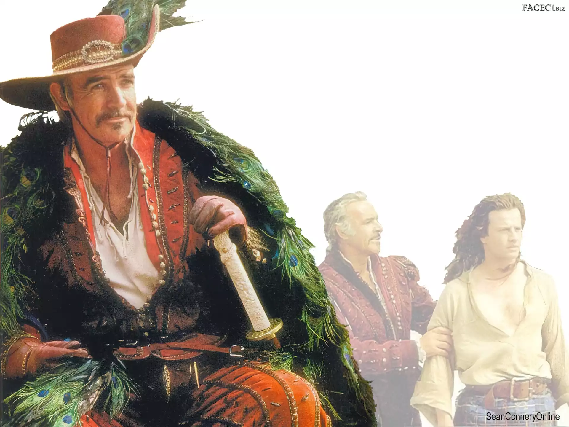 płaszcz, Sean Connery, kapelusz Sean Connery, wąsy Sean Connery, kapelusz Sean Connery, siwa broda Sean Connery, miecz Sean Connery, muszka Sean Connery, goldfinger Sean Connery, entrapment Sean Connery, statuetka ręka, Sean Connery, twarz Sean Connery, Catherine Zeta-Jones Sean Connery, płyta Sean Connery, zdjęcia twarze, Sean Connery, miecz